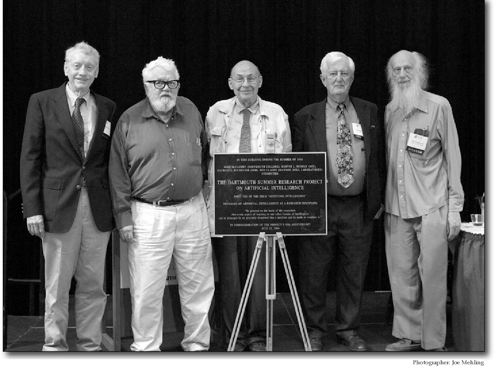 Reunión conmemorativa de las figuras clave del Proyecto de Investigación de Verano de Dartmouth de 1956 sobre Inteligencia Artificial, que marcó el nacimiento de la IA como campo de estudio.