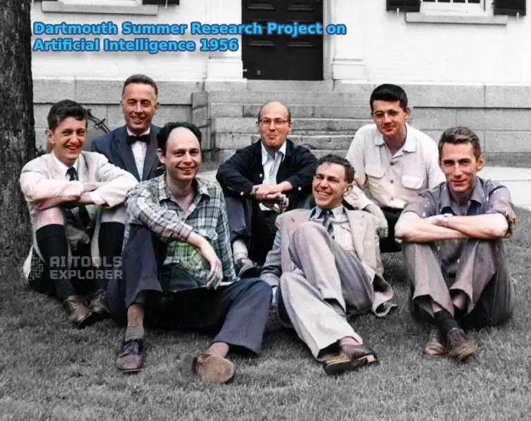 Foto del Proyecto de Investigación de Verano de Dartmouth sobre Inteligencia Artificial en 1956, que marca el nacimiento de la investigación en IA.